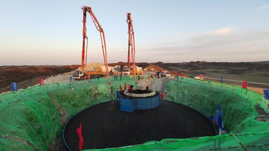 风机基础作为风电场中最为重要的结构之一,对风机的正常运行和安全稳定至关重要。该项目位于天山北麓的奇台县境内,其地貌以剥蚀丘陵地貌单元为主、场区呈荒滩景观,地面海拔约1000米,且冬夏及昼夜温差悬殊极大,在大幅度温差和高海拔的恶劣气候条件下,极易导致混凝土裂缝、强度低或承载力不足等质量问题,影响风机稳定。