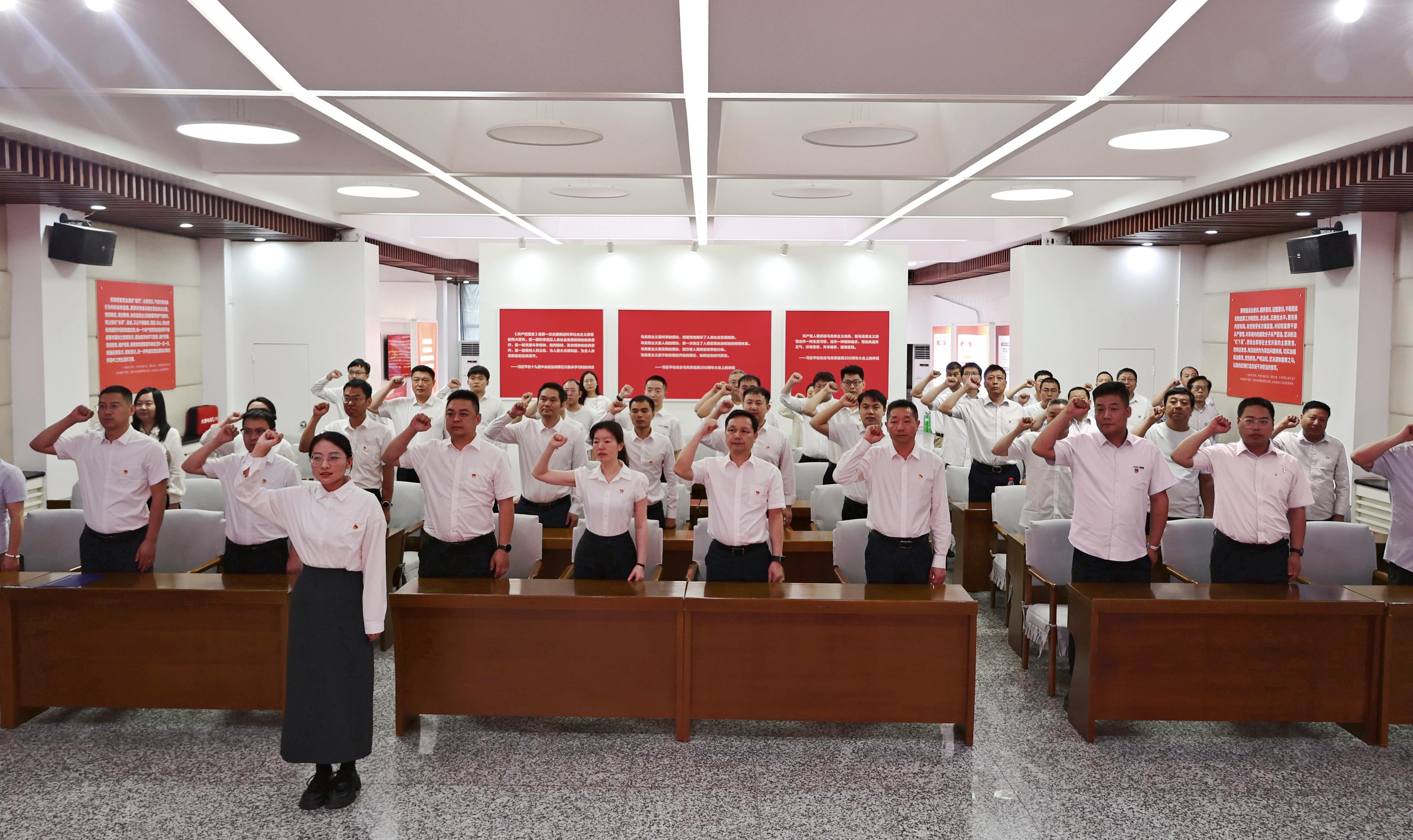 活动中,全体党员干部面向党旗,重温入党誓词,更加坚定了为共产主义事业奋斗终身的理想信念。