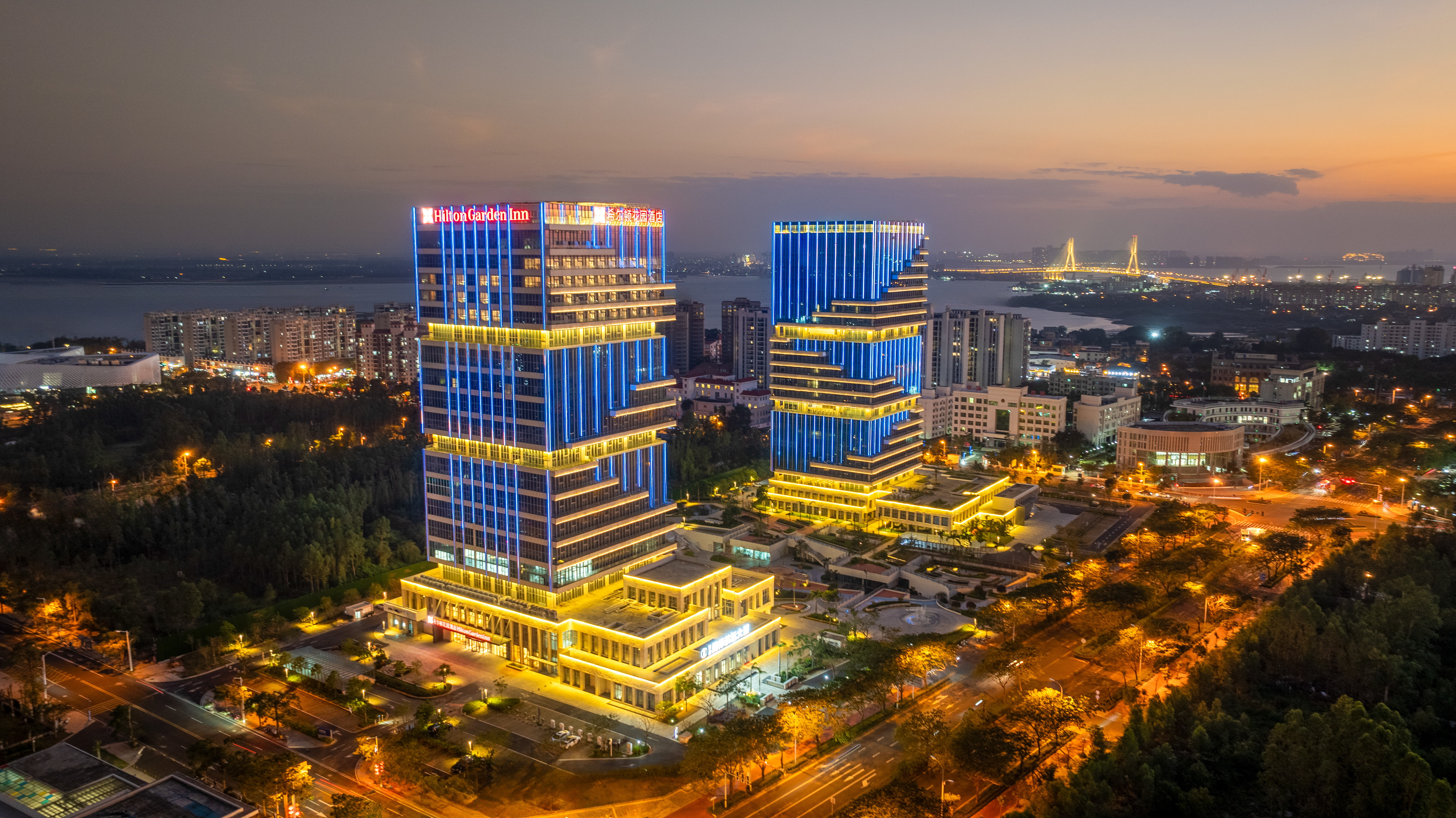 洋浦国际航运大厦坐落于海南省洋浦经济开发区,作为海南省重点项目、洋浦重要的航运产业配套项目之一,其外观设计为“双子星座”,由两栋塔楼和中心下沉广场组成,高度近百米,总建筑面积10.43万平方米,是集行政办公、高端商务办公、商务酒店为一体的多元化综合性大厦。该大厦于2021年4月15日开工建设,2023年9月27日完成竣工验收。