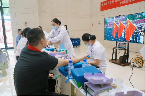 活动现场专门设置了大屏幕播放纪念中国人民抗日战争暨世界反法西斯战争胜利80周年大会实况,100余名干部职工在观看阅兵盛况中,以独特方式祭奠先烈、传承血脉,共计献血25000毫升,以实际行动践行了央企社会责任,为临床用血保障注入了“葛洲坝力量”。