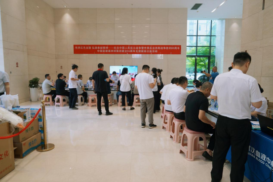 9月3日上午9时,中国能建葛洲坝集团组织在汉干部职工开展无偿献血活动,纪念中国人民抗日战争暨世界反法西斯战争胜利80周年。
